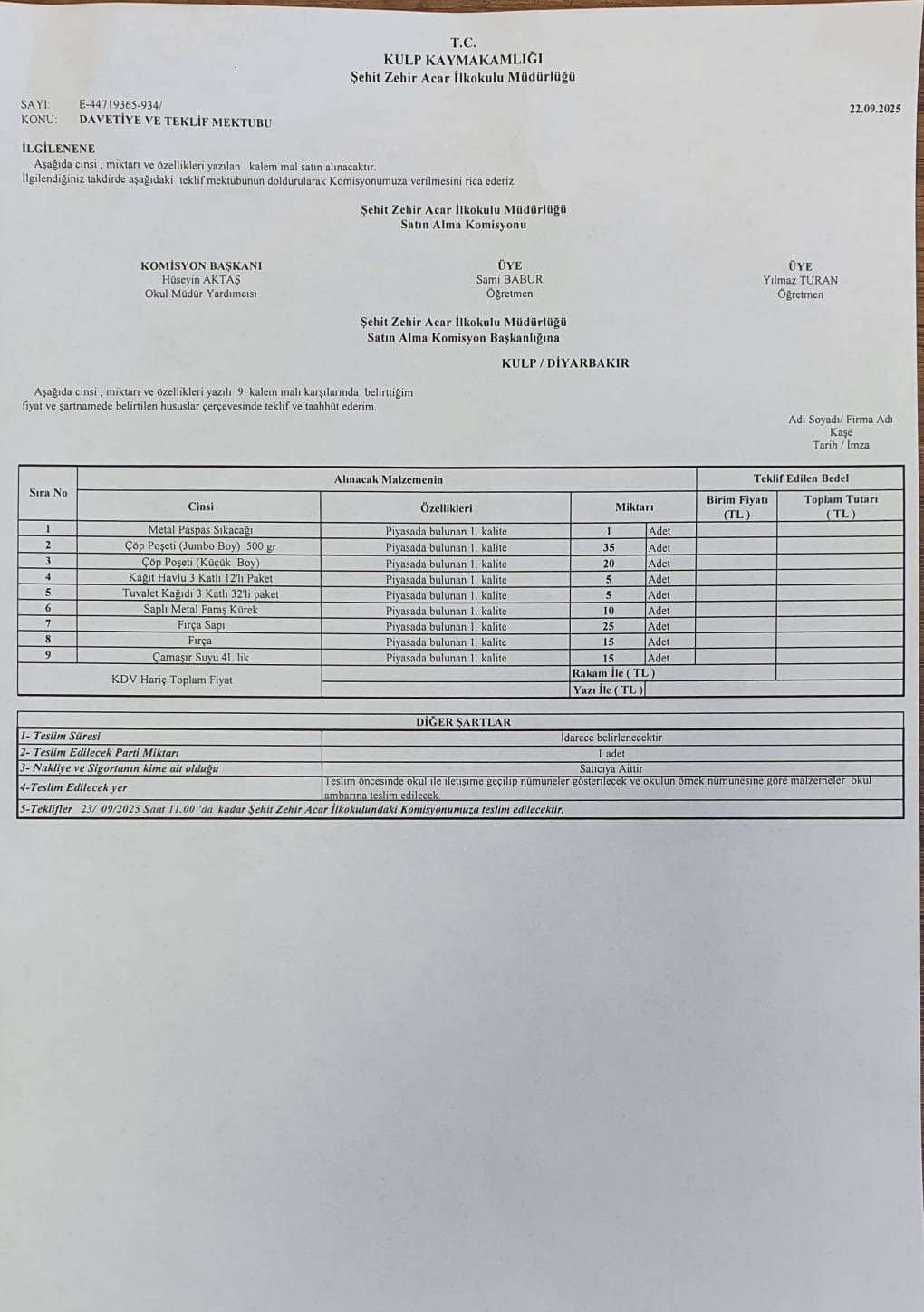 Müdürlüğümüz bünyesinde bulunan Kulp Şehit Zehir Acar İllkokulu doğrudan temin duyurusu ekte sunulmuştur.